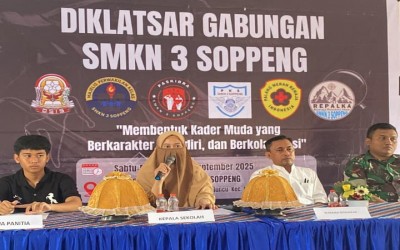 Siswa-siswi perwakilan dari berbagai organisasi di SMKN 3 Soppeng mengikuti kegiatan Pendidikan dan Latihan Dasar (Diklatsar) Gabungan atau Latihan Da