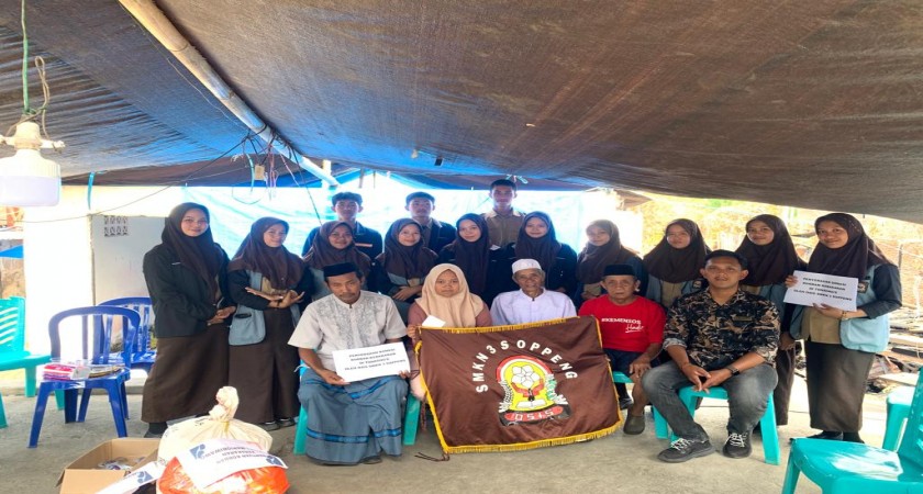 YusrilAfif Sulaiman,S.Pd, Tim Kesiswaan, Bidang organisasi dan ekstrakurikuler , Reni Andriyani, S.Pd.M.Pd, Kepala SMKN 3 Soppeng didampingi oleh Pembina OSIS, Waka Humas, Muslimin,S.Pd dan perwakilan guru ,serta segenap pengurus OSIS SMKN 3 Soppeng menyerahkan bantuan untuk korban kebakaran untuk warga kecamatan Marioriwawo, Kabupaten Soppeng. Bantuan ini disalurkan melalui TIM Peduli Bencana OSIS SMKN 3 Soppeng . Senin (15/09)