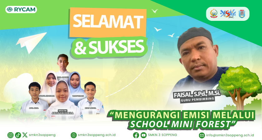 Tim dari SMKN 3 Soppeng berhasil meraih kemenangan dalam kompetisi School Challenge tahap 1 yang diselenggarakan oleh RYCAM (Rural Youth Climate Action Movement). Dengan mengusung inovasi bertajuk "Mengurangi Emisi melalui School Mini Forest", tim ini sukses melaju ke tahap berikutnya dan akan bersaing dengan sekolah-sekolah dari berbagai daerah di Indonesia.