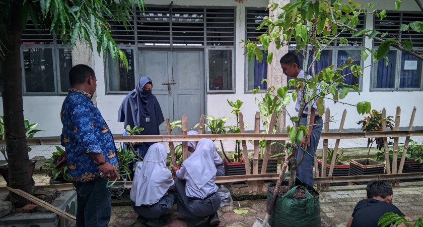 Sebagai salah satu bentuk kegiatan penghijauan sekolah untuk mengurangi emisi di SMKN 3 Soppeng tim School Contes melaksanakan penanaman beberapa pohon.