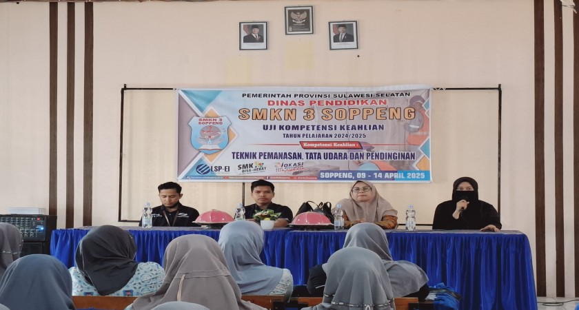 Kepala SMKN 3 Soppeng, dalam sambutannya berharap para siswa dapat memanfaatkan momen UKK ini untuk mengasah kemampuan dan siap terjun ke dunia kerja.