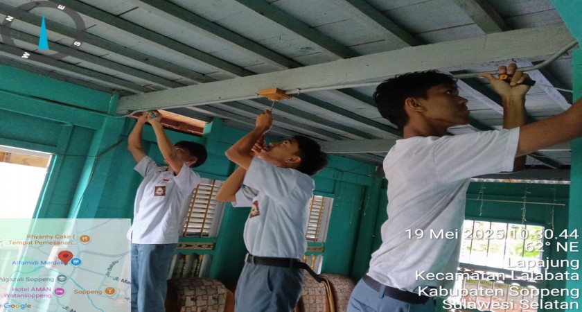 Lapajung - Dalam rangka penerapan model pembelajaran Project Based Learning (PjBL), sejumlah siswa SMKN 3 Soppeng melaksanakan praktik pemasangan instalasi listrik rumah sederhana satu fasa di salah satu rumah warga di Kelurahan Lapajung, Kecamatan Lalabata, Kabupaten Soppeng, pada Senin, 19 Mei 2025.