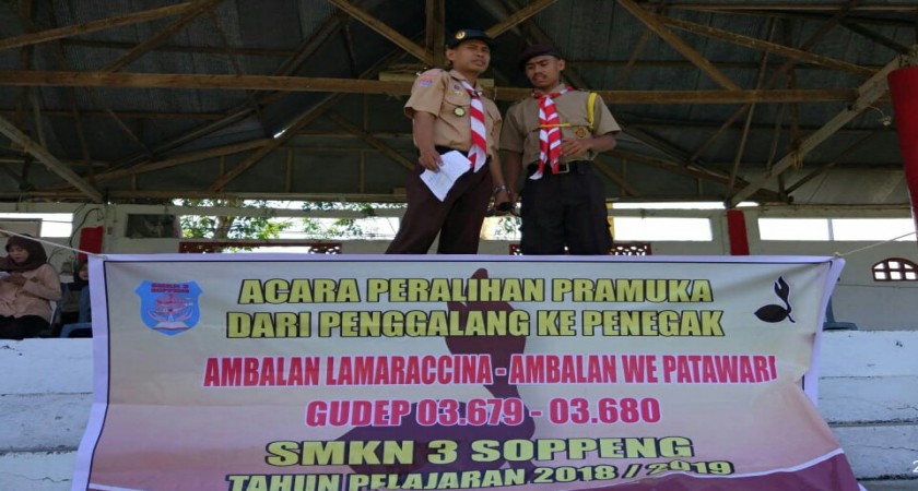 Sebagai siswa baru kelas X SMKN 3 SOPPENG, harus mengikuti kegiatan penerimaan tamu ambalan dalam bentuk perkemahan, tujuannya adalah peralihan golongan siswa dari Pramuka Penggalang menjadi Pramuka Penegak. Kegiatan penerimaan tamu Ambalan LAMARACCINA - Ambalan WE PATAWARE dalam bentuk perkemahan dilaksanakan setiap awal Tahun Pelajaran Baru, yang tahun ini dilaksanakan pada Hari Sabtu s.d Minggu, Tanggal 8 s.d 9 September 2018 lalu. Setelah mengikuti kegiatan perkemahan dan proses pengukuhan, maka secara resmi siswa kelas X menjadi anggota Pramuka Penegak laki-laki No. Gudep 03.679 dan No. Gudep 03.680 bagi Pramuka Penegak Perempuan.
