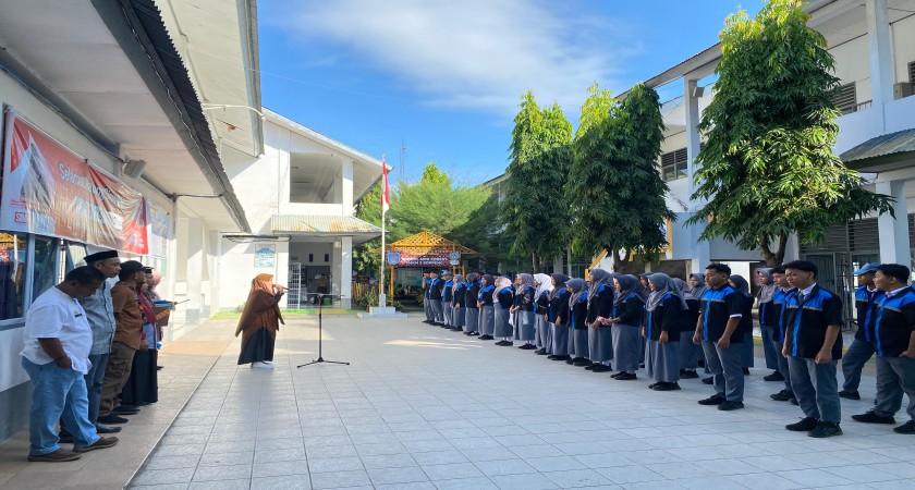 Kepala SMKN 3 Soppeng, Ibu Reni Andriyani, S.Pd., M.Pd., dalam sambutannya memberikan motivasi dan pesan yang kuat kepada para siswa.
