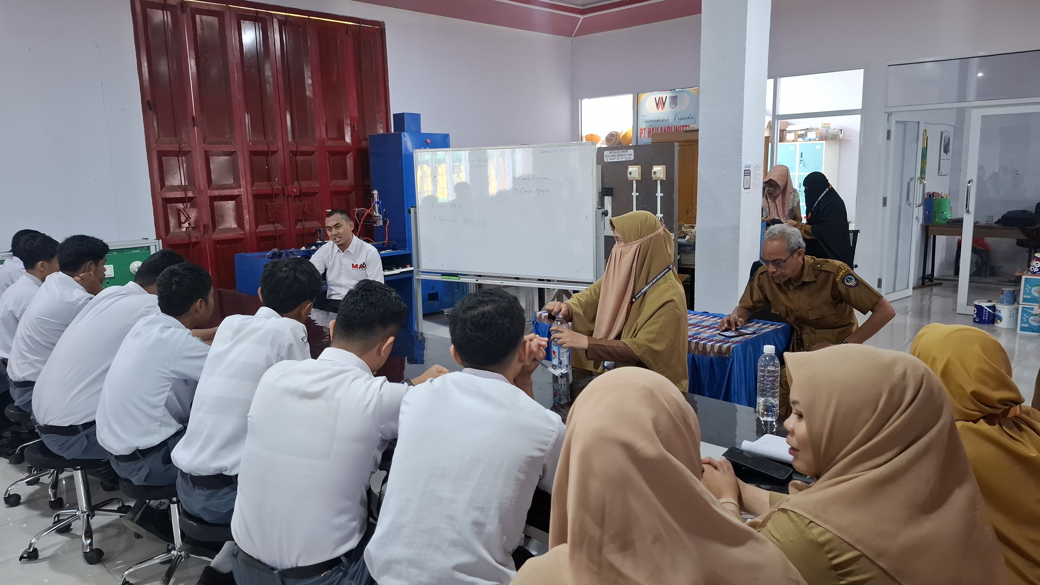 Suasana di Ruang Praktik Siswa (RPS) Teknik Instalasi Tenaga Listrik (TITL) SMKN 3 Soppeng tampak lebih dinamis dari biasanya. Mulai hari ini hingga Rabu mendatang, ruangan yang menjadi pusat praktik siswa ini beralih fungsi menjadi ajang transfer ilmu langsung dari industri melalui program guru tamu yang menghadirkan Bapak Faksindra Nasution, ST., MT. dari CV. MPPKI.