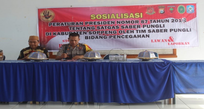 pada pelaksanaan sosialisasi ini menjelaskan tentang latar belakang penerbitan Perpres RI Nomor 87 Tahun 2018 tentang Satgas Saber Pungli, Potensi Pungli yang dapat terjadi di sekolah-sekolah khususnya di SMKN 3 Soppeng, serta pungli merupakan perbuatan yang dapat merusak Sendi-sendi perekonomian masyarakat dan meminta para Guru agar tidak melakukan pungli karena diproses menurut Hukum yang berlaku baik sebagai pemberi maupun sebagai penerima imbalan tidak sesuai dengan ketentuan.
