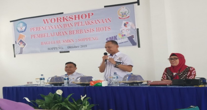 Rabu (16/10/2019), menggelar workshop Pembuatan Instrumen Penilaian Berbasis Higher Order Thinking Skill (HOTS). Pembukaan acara dari perwakilan Kepala Cabang Dinas Pendidikan Wilayah IV ( Wajo-Soppeng) bapak DR. Settaraming. Workshop yang berlangsung 3 hari di SMK 3 Soppeng tersebut digelar dalam rangka peningkatan mutu penilaian tahun 2019.