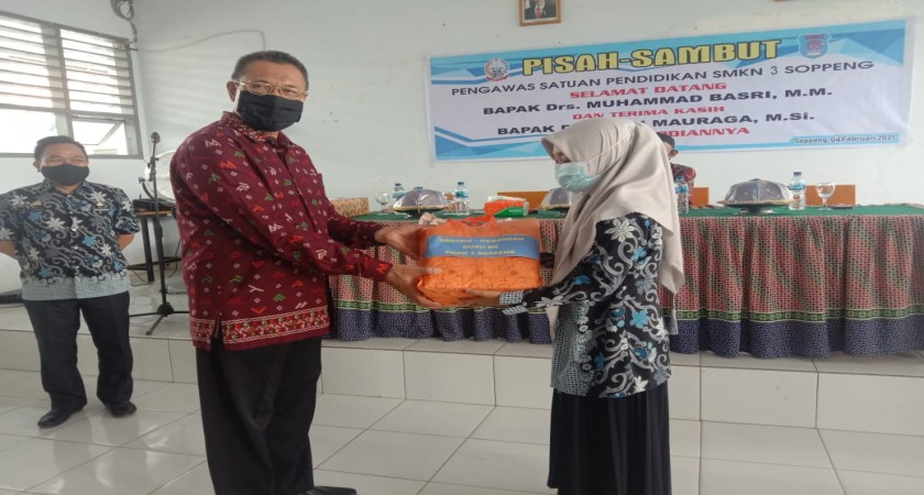 Kamis, 4 Februari 2021 diadakan acara pisah sambut pengawas satuan pendidikan SMKN 3 SOPPENG dari pengawas lama Drs. Dadi Mauraga, M.Si ke pengawas baru Drs. Muhammad Basri, M.M. Acara tersebut di pandu oleh pembawa acara yang tak lain merupakan tenaga pendidik dari SMKN 3 SOPPENG.